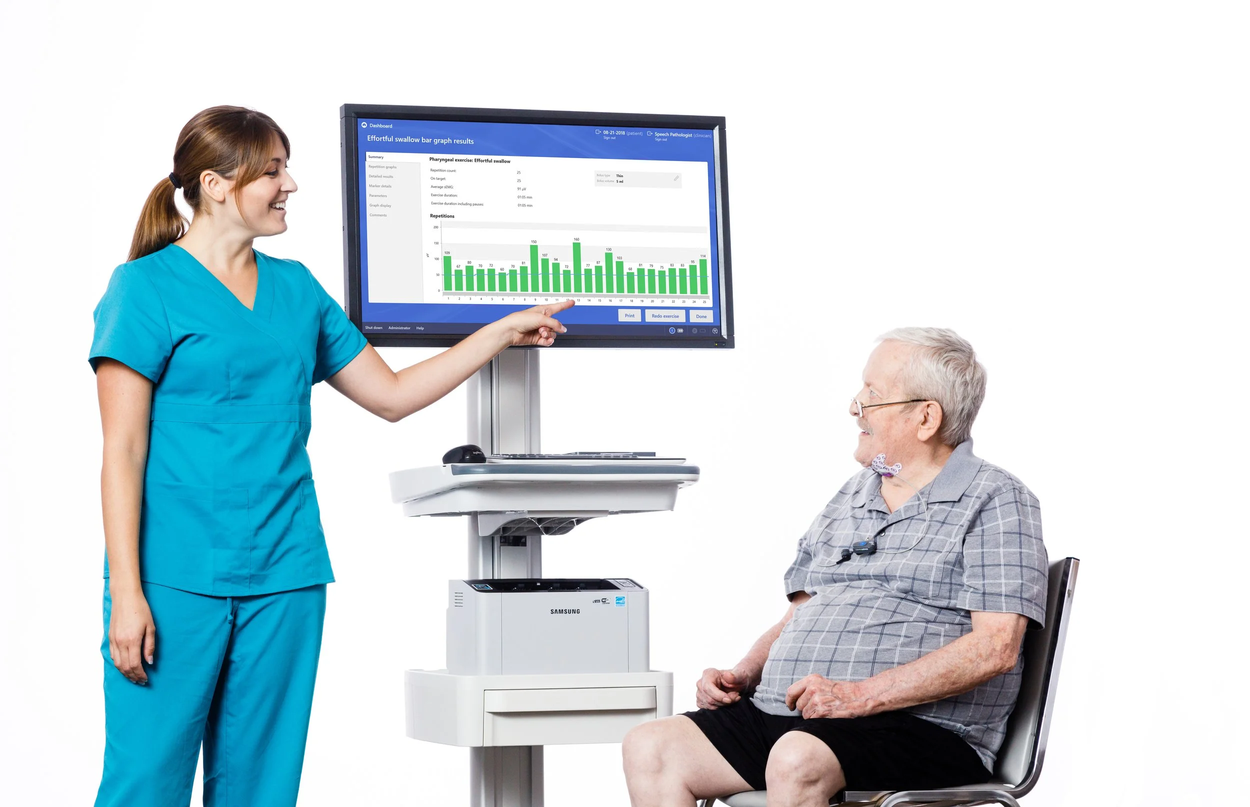 Synchrony® Dysphagia Solutions by ACP® combines surface electromyography (sEMG) and patterned electrical stimulation (PENS) to support improved swallow function, muscle strength, coordination, and patient comfort. With objective biofeedback and engaging, interactive therapy options. Synchrony® helps clinicians deliver effective, patient-centered dysphagia treatment while supporting better functional outcomes.